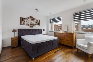 Eerste verdieping: 2 grote slaapkamers. Badkamer met inloopdouche, ruim wastafelmeubel en verlichte spiegel van Duravit, design radiator.
